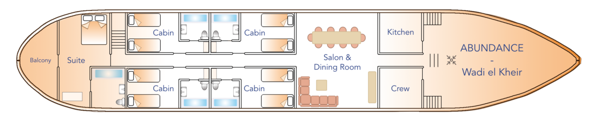 Scroll down for more information and impressions of our dahabeya ABUNDANCE as well as for photos and a video.