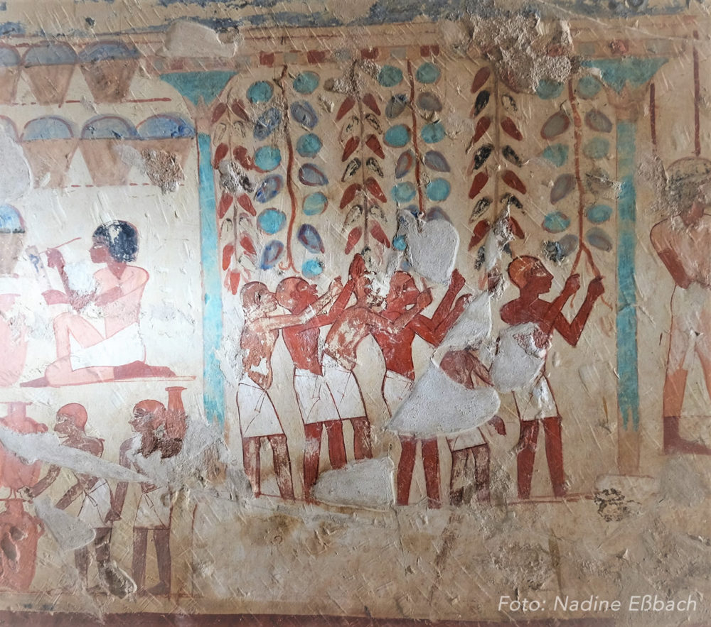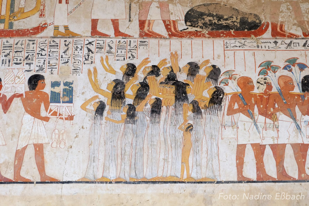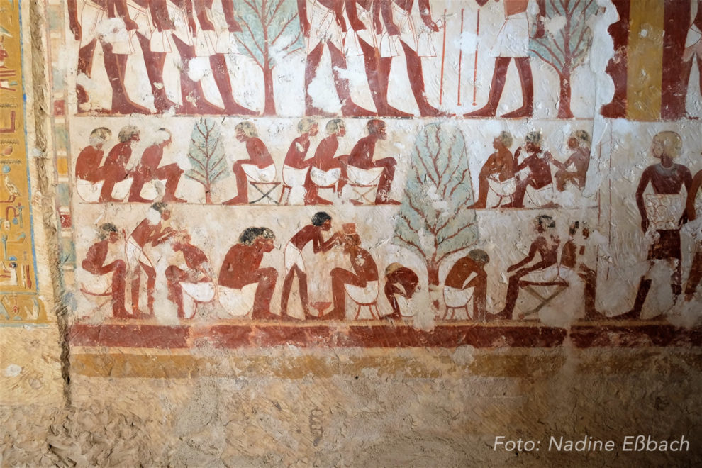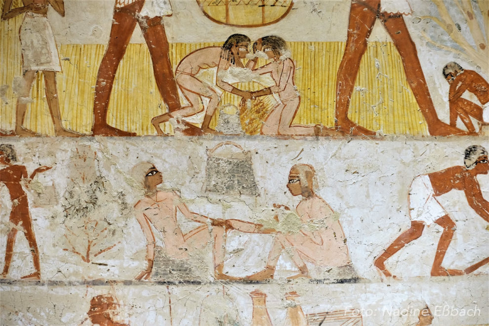 Even after more than 3000 years, the frescos in the tombs of the high-ranking Egyptians still glow as colorfully as ever. However, in contrast to the paintings in the far better-known tombs of the Valley of the Kings, these depict not only scenes from the afterlife, but also – and, indeed, principally – daily life in this world. The images portray the bustling activity along the fertile banks of the Nile and provide insights into the life and death of the people who lived there, their everyday joys and sorrows, and their often hard circumstances.